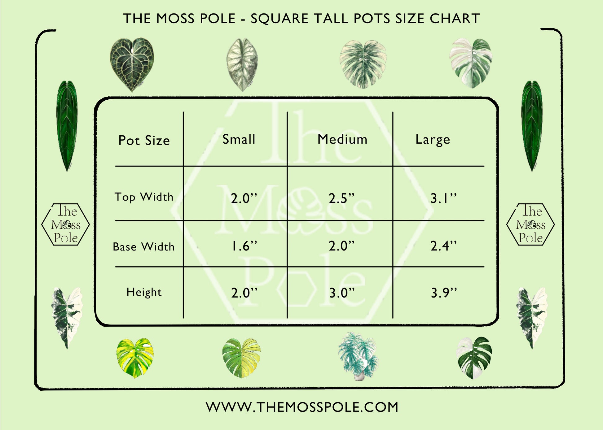Large: 3.1β (top width) Γ 2.4β (base width) Γ 3.9β (height)